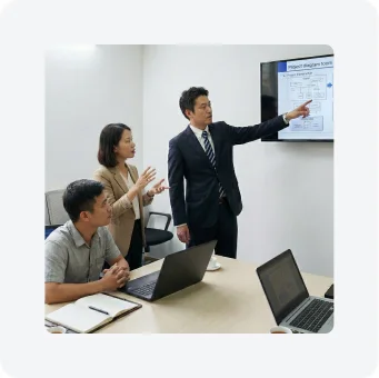 言語・商習慣・報告精度の違いによる不安は多くの日本企業が感じています。 N1取得スタッフと日本人ディレクターが常に介在し、日本基準で管理します。