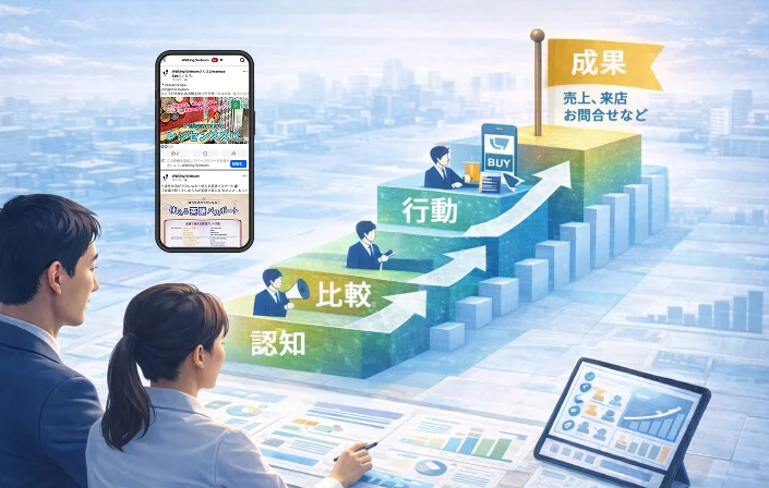 「選定」からではなく、最初に事業成果(CV・問い合わせ・来店など)を定義。成果から逆算して戦略を組み立てる体制が整っています。
